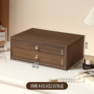 首饰品收纳盒耳饰环钉戒指项链木质制高级感档精致三层首饰盒抽屉