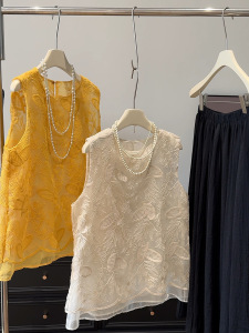 偽ツーピース刺繍ノースリーブベスト 2025 夏韓国スタイルルーズスリム無地カジュアルラウンドネックレディース Tシャツトレンディ