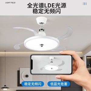 フルスペクトル目に見えないファンランプ中古クリームミニマリストレストラン可変周波数シーリングファンランプリビングルーム超薄型ファン一体型ランプ