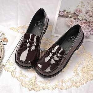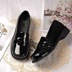 オリジナル制服靴/ラウンドトゥパテントレザー JK スクール供給小さな革靴女性日本製浅口シングルシューズローファー