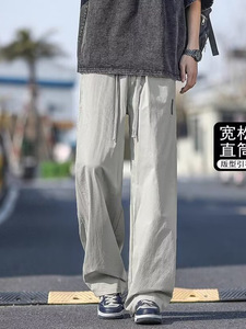 夏カジュアル通気性薄いトレンディなブランドストレートルーズメンズワイドレッグスポーツパンツ日本多用途メンズロングパンツ