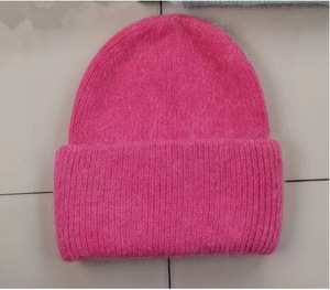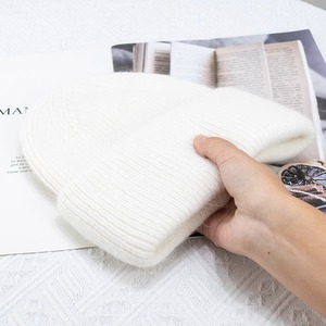 韩国ins兔毛毛线帽子女 秋冬加厚日系冷帽保暖套头卷边护耳针织帽