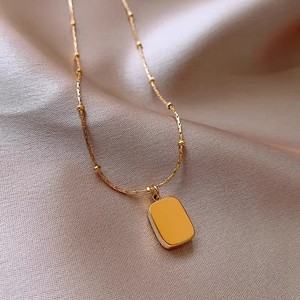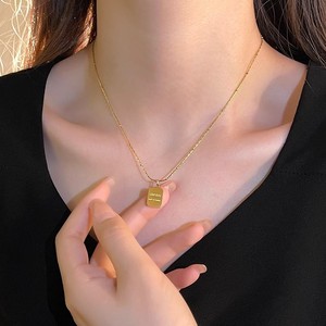 レタースクエアチタン鋼ネックレスレディースライトラグジュアリーニッチハイエンドゴールデン鎖骨チェーン人気のファッショナブルな多用途アクセサリー