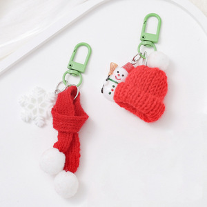 新款欧美跨境饰品针织帽钥匙扣卡通圣诞节雪人钥匙扣手工挂件配件