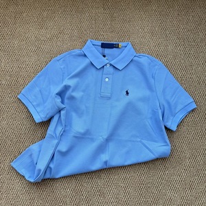オリジナルのラベルはスキャン可能 RLラフ半袖2ボタンポロシャツ(馬の刺繍入り襟付き)男女兼用Tシャツ