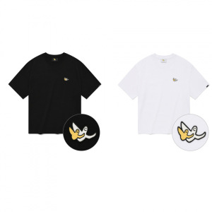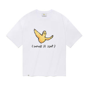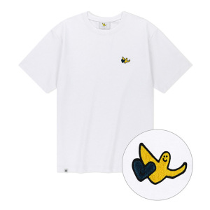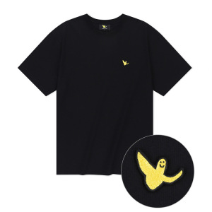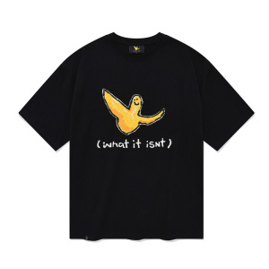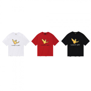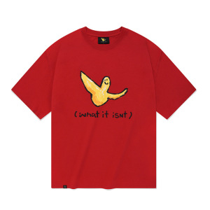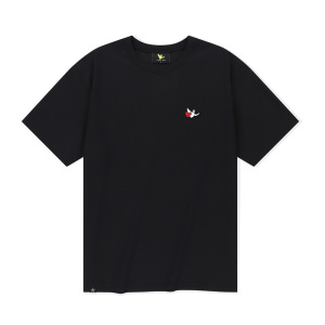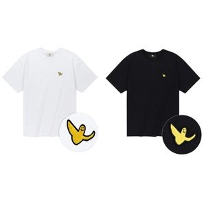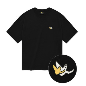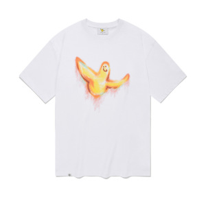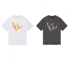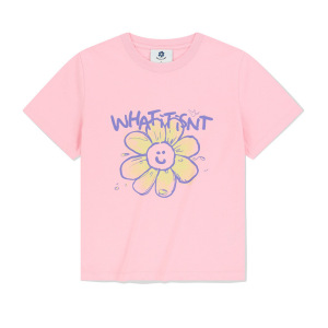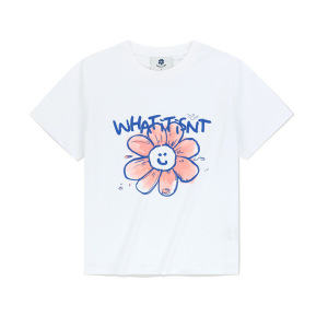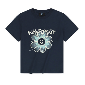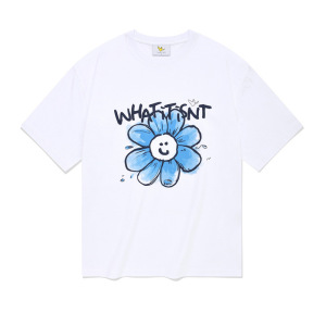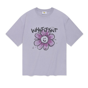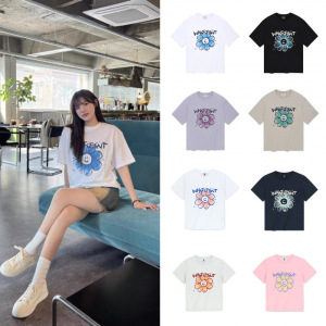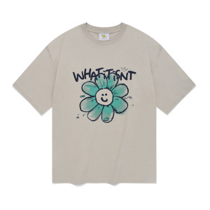 韓国のニッチなトレンディなブランドの正しいバージョン、小さなフライングマンフラワープリント半袖ルーズで多用途なカジュアルラウンドネックTシャツ、女性用夏用