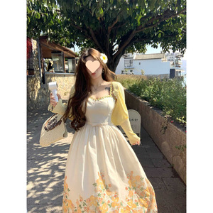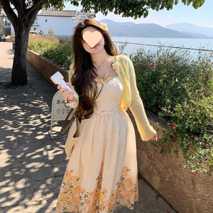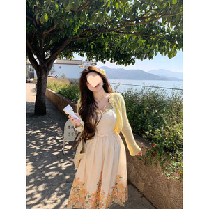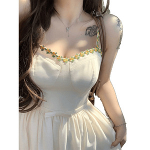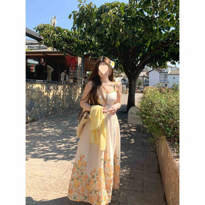 胖mmA字大裙摆印花吊带裙女夏季新款微胖大码碎花