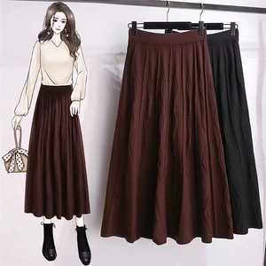 百褶针织半身裙女秋冬2025新款高腰遮胯显瘦大摆A字伞长款裙子
