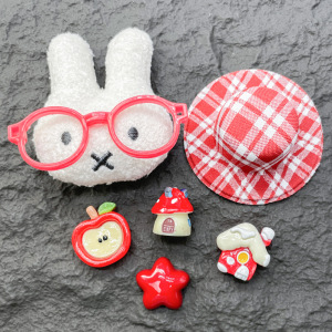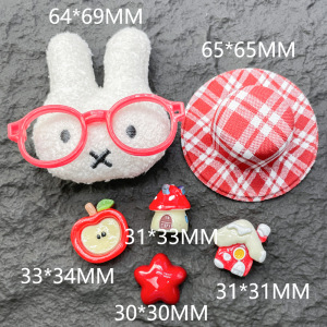 小紅書と同じスタイルのメガネウサギ白猫樹脂アクセサリー diy 携帯電話ケース下駄バックルヘアアクセサリー装飾材料