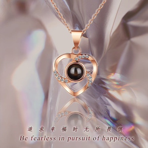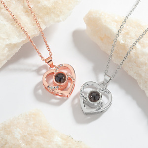 クロスボーダーオゾン人気の100言語プロジェクションストーンネックレスシンプルで甘いインスタイル色褪せないハート型鎖骨チェーン