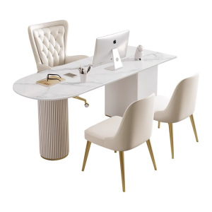 イタリア製ライト高級スレートデスク、美容室、医療美容フェイシャルコンサルタント相談室、受付デスク、デザイナー特殊形状デスク