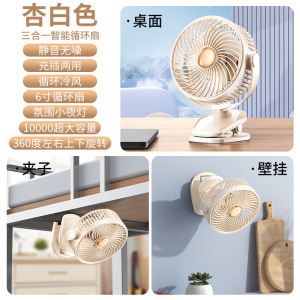 【アプリコットホワイト-10000M】クランプ・立て置き可能◆5段階の風循環◆静かで静か