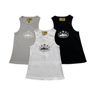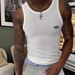CZ恶魔岛重磅美式重工刺绣螺纹针织背心男款修身运动健身上衣潮