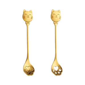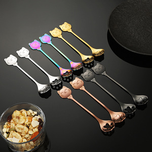 クロスボーダー新しいステンレス鋼猫スプーンクリエイティブ猫の爪コーヒー撹拌スプーンかわいい猫ロングハンドルデザートスプーンアイスクリームスプーン