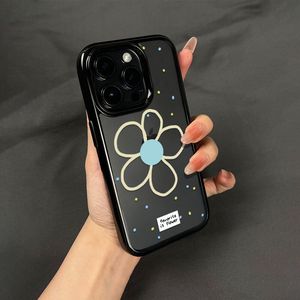 シンプルな花 Apple 13 16 ブラックフレームアクリル携帯電話ケース 16promax 漫画 11 12 大穴 15