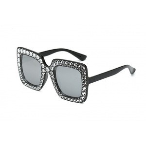 クロスボーダーヨーロッパとアメリカのファッショナブルなパーソナライズされたダイヤモンドメッキサングラス、カラフルなレンズ、女性用パーソナライズされたスクエアベビーブレスビッグフレームサングラス