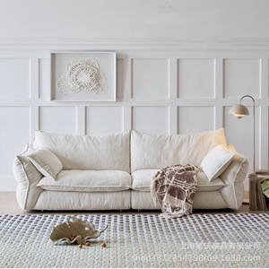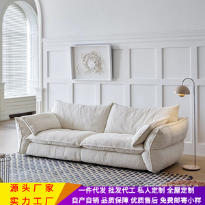 フレンチレトロクリームスタイルラドソファリビングルームデザイナー新しいアパートファブリックストレート3人掛けソファ