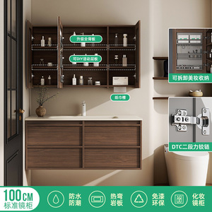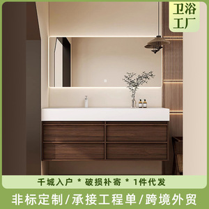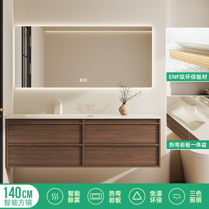 中古风胡桃木岩板热弯一体盆浴室柜卫浴柜骨骼线偏盆洗手台洗漱台