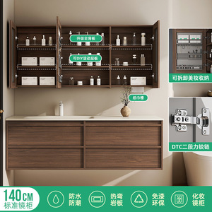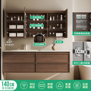 1.4米岩板无缝台面+柜体+感应智能镜柜