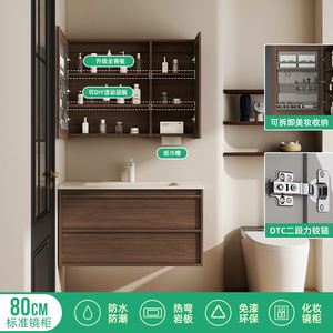 0.8米岩板无缝台面+柜体+感应智能镜柜