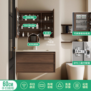 0.6米岩板无缝台面+柜体+感应智能镜柜