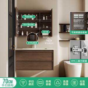 0.7米岩板无缝台面+柜体+感应智能镜柜