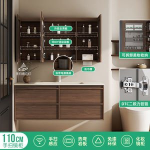 1.1米岩板无缝台面+柜体+感应智能镜柜