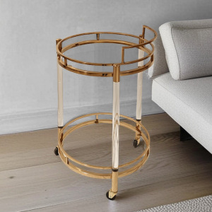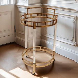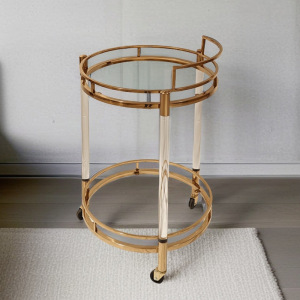 跨境轻奢欧式餐车可移动餐边酒柜圆形不锈钢小推车酒店糕点茶水车