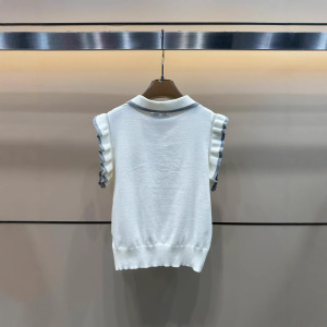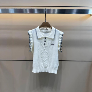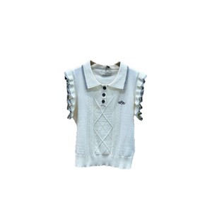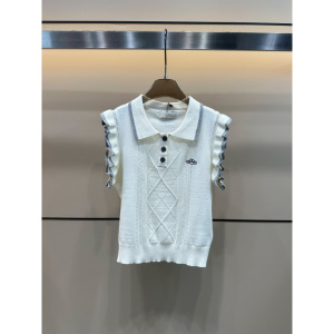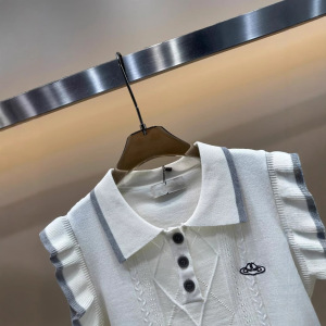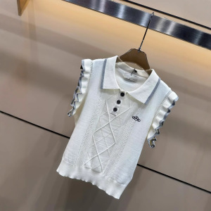 2025 新しい夏のプラネットフリルスリーブニットノースリーブラペルプルオーバーベストルーズで多用途な女性のトップ
