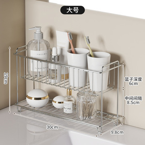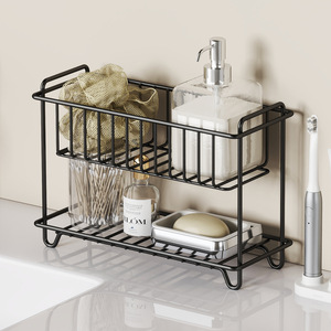 ステンレス鋼二層キッチン食器排水バスケット家庭用シンプルなバスルームパンチフリーラック化粧品収納ラック