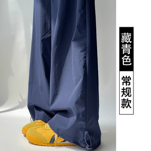 女性用ブルーの速乾性作業服パンツ、ルーズストレートレッグ、2025年ハイウエスト、小柄な人向けワイドレッグカジュアルスポーツパンツ、ハイウエストでスリムに見える