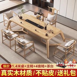 【爆款】原木色1.4米桌+主人椅+茶椅*4+送茶水柜