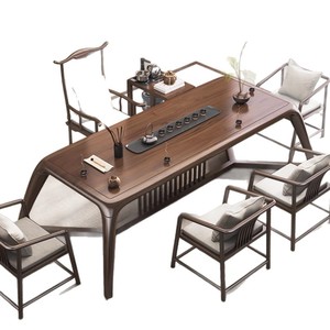【爆款】胡桃色2.0米桌+主人椅+茶椅*4+送茶水柜