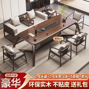 【爆款】胡桃色2.4米桌+2.4米罗汉床+茶椅*5+送茶水柜
