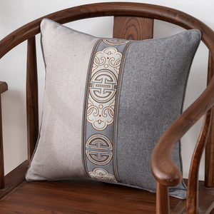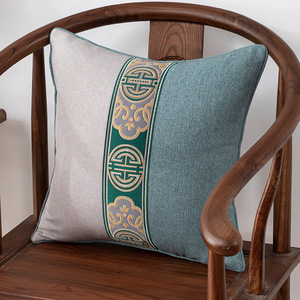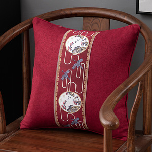 新しい中国風の枕リネンライト高級無垢材ソファクッション結婚式ベッドリビングルームクッションハイエンドレッドベッド