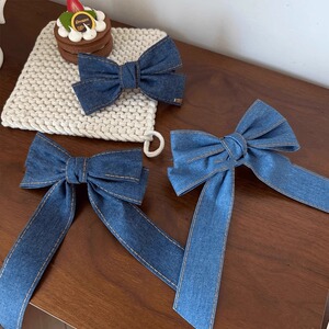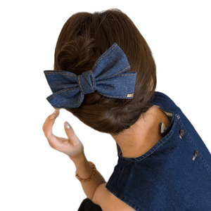 韓国風おしゃれデニムリボンヘアピン、シンプルで高級感のある後頭部大型カモノハシピン、スイートリボンヘアピン