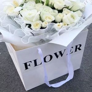 新しいギフトフラワートートバッグ正方形の厚みのあるギフトバッグバレンタインデーフラワーショップ包装トートバッグ卸売