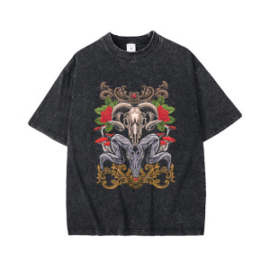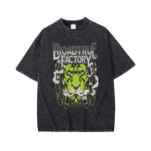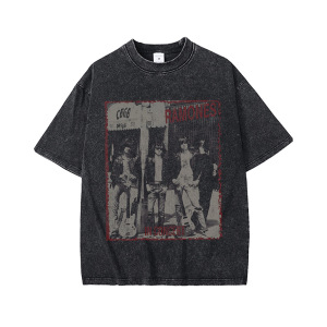 欧美潮牌复古嘻哈数码创意直喷印花纯棉水洗做旧宽松圆领短袖t恤