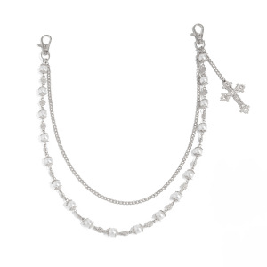 ヨーロッパとアメリカのクロスボーダーファッションパールフラワーパンツチェーンメンズトレンディなハイエンドヒップホップニッチメンズクロスペンダントアクセサリー