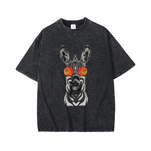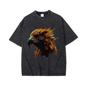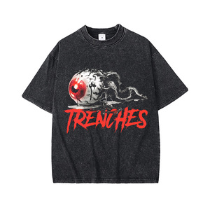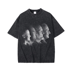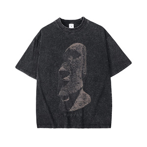 ハイストリートレトロヘビーウォッシュホワイトインクダイレクトプリントプリントメンズとレディースインレトロヒップホップトレンディブランド半袖Tシャツ