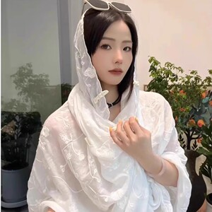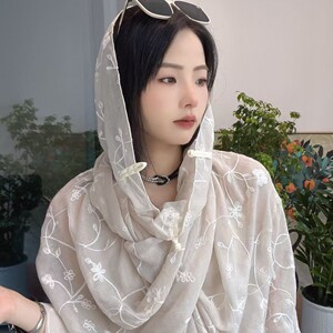 2025年新作夏刺繍ボタン日焼け止めショール薄型多用途旅行写真日よけガーゼスカーフカーディガン付き