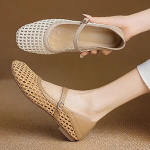 シープスキンバージョン〜女性用フラットシューズ2025新しいフレンチメリージェーンシューズ、スカート付き、ソフトソール中空下駄