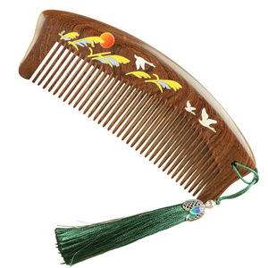 白鳥プリント 15cm ムーンコーム + グレーズグリーンタッセル + 竹ロングシルクバッグ