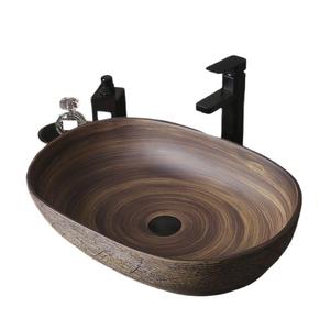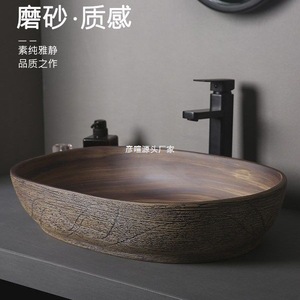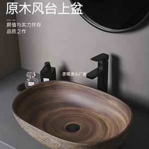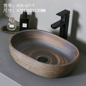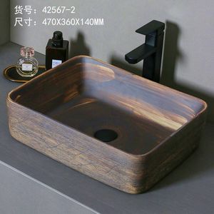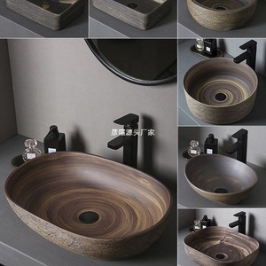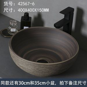 レトロなテーブル上の洗面器屋外洗面器中庭アート洗面器浴室セラミック洗面器バルコニー洗面器ホーム