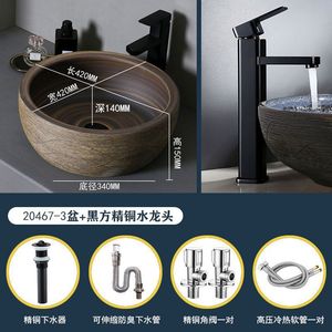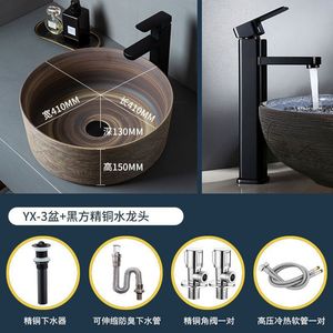 YX-3 シングル洗面器【ブラックスクエア銅製蛇口】セット
