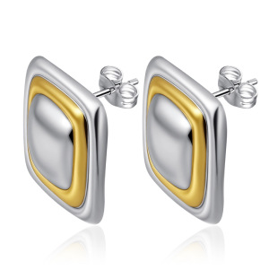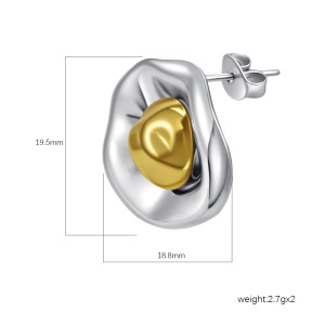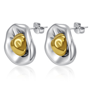 国境を越えた直接供給の不規則な幾何学的な楕円形のイヤリング、ゴールドのツートンカラーのラインイヤリング、ファッショナブルで多用途のステンレススチールジュエリー