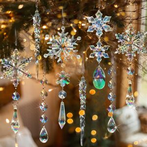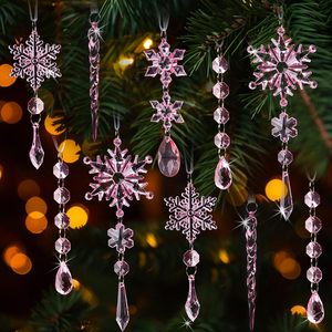 10 個セットクロスボーダークリスマスツリースノーフレークペンダント装飾アイスストリップ透明スノーフレークアイスリントアクリルクリスタルアイスコーンセット