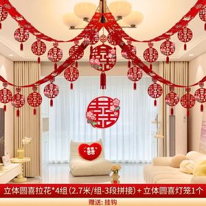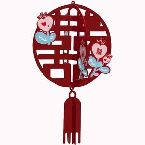 立体圆喜拉花4条+圆喜灯笼1个送粘钩