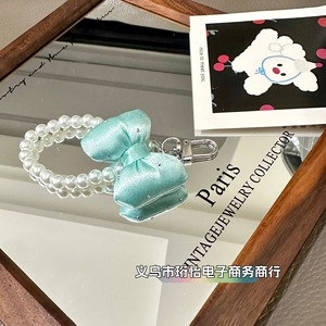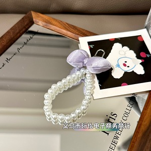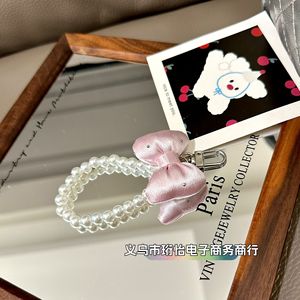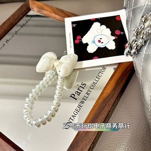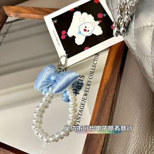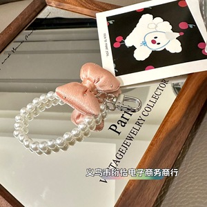 クロスボーダーガールスイートミルクシェイクカラースポンジリボンパール携帯電話チェーンバッグペンダント車のキーホルダー紛失防止ロープ
