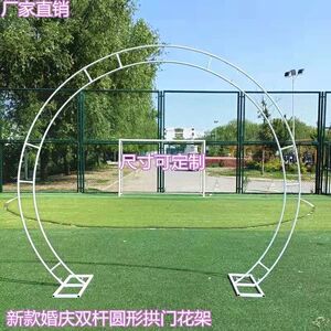新款婚庆道具圆形双杆花门仿真花户外铁艺背景装饰圆弧形拱门架子